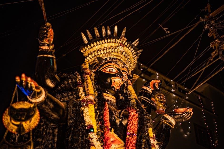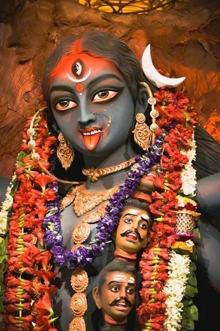 Unlike gentler forms of Shiva, Kalabhairava embodies untamed energy. The Ashtakam highlights his role as a guardian, ensuring the continuity of cosmic order. He’s frequently depicted as naked, adorned with skulls, symbolizing detachment from worldly attachments. This imagery, detailed within the PDF text, isn’t meant to be gruesome, but rather a representation of ultimate freedom and transcendence. His devotees seek his blessings for overcoming obstacles and achieving profound spiritual insights.